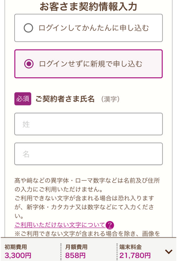 - 既にイオンモバイルの回線契約がある方⇒ログインしてかんたんに申し込む