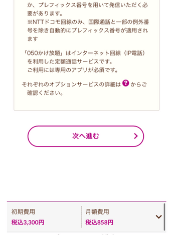 ドコモ回線 or au 回線、オプション等選択し次に進みます。(オプションは特に加入しなくても大丈夫です)