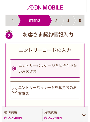 ・左下の画面について、基本的には「エントリーパッケージをお持ちでないお客さま」の選択でOKです。事前にエントリーパッケージを購入した方は下を選択してください。