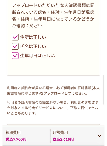 重要事項説明に同意する→本人確認書類の送信