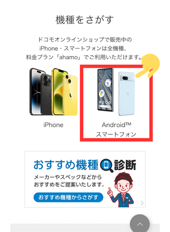 あとからドコモオンラインショップでの購入ではなく、ahamoの申し込みと同時にスマホを購入したい場合についてです。