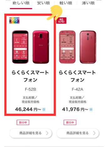 ★ahamoで動作確認済みのらくらくホンは「らくらくスマートフォン F-52B」と「 あんしんスマホ KY-51B」なので、らくらくかあんしんで検索しましょう!