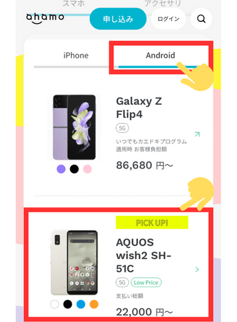 ahamo申し込みと同時にAQUOS wish2を購入する方法