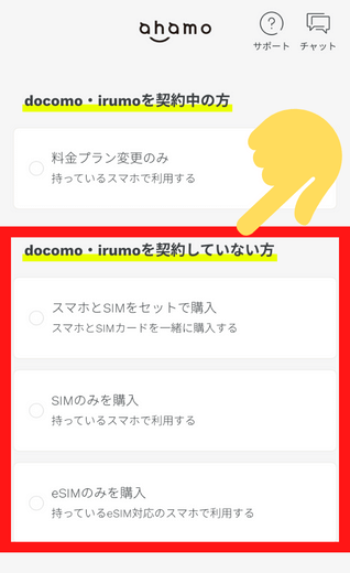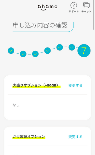 ahamoの申し込みを進めていくと以下のような項目があります。