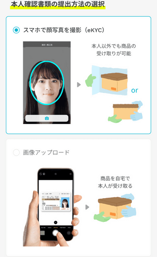 ●eKYCは、スマホのカメラで顔を撮影&本人確認書類をアップロードして、オンラインで迅速な本人確認ができるものです。