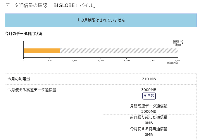 BIGLOBEモバイルで速度制限がかかった場合は、翌月になると速度制限が解除されます。