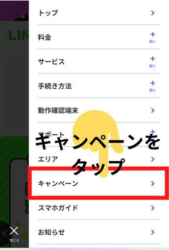 右上のメニューをタップし、「キャンペーン」タップ