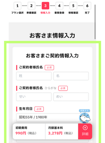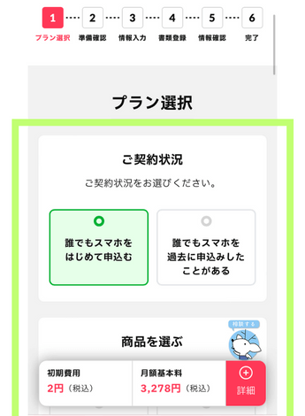 - 新規契約なのか他社から乗り換えなのかを選択