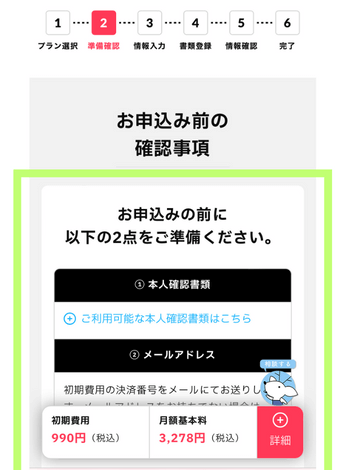 ※初期費用はこのときに代引きで支払います。(初めての利用&SIMカードのみの申し込みであれば支払いは発生しません。)
