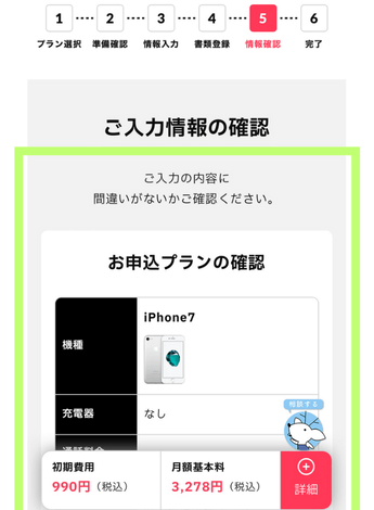 各項目選択が完了したら一番下にある「確認画面へ進む」をタップ