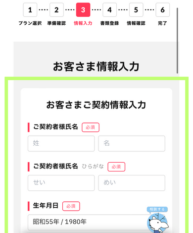 確認事項をチェックしたら、一番下の「お客様情報の入力へ進む」をタップ