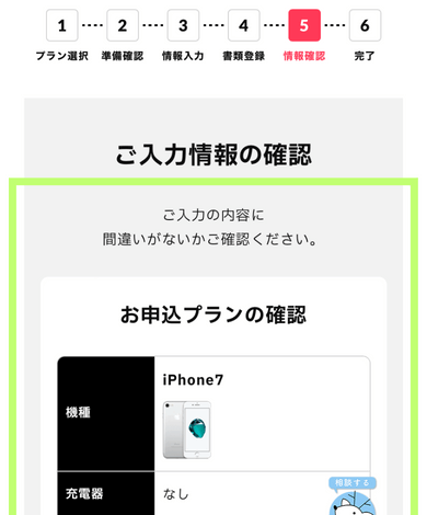 入力内容を確認し、間違いがなければ一番下の「この内容で申込む」をタップ