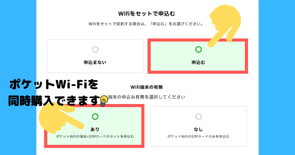 誰でもスマホでは、スマホと同時に「ポケット型WiFi」の申し込みができます💡