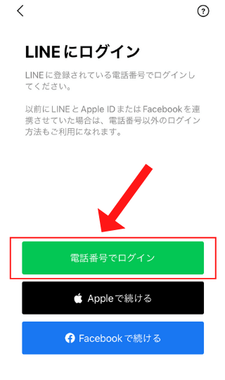 新しいスマホでLINEをインストールし、ログイン>電話番号でログインをタップ