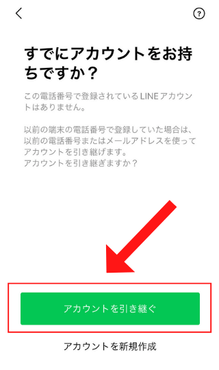 ※もし「おかえりなさい、◯◯さん」と別の人のアカウントが出てきた場合は、「いいえ、違います」をタップしてください。←過去に同じ電話番号を使っている人がいた場合にこういった表示が出る場合があります。
