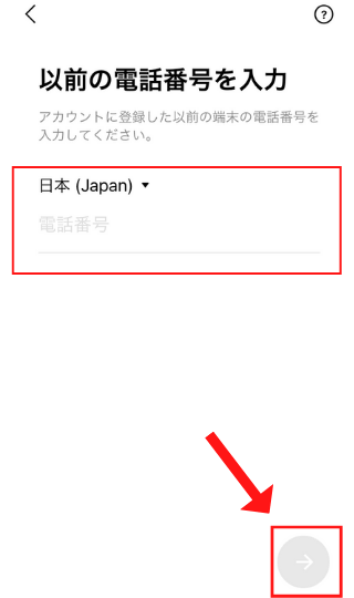 以前の電話番号を入力」に元の電話番号を入力し次へ、