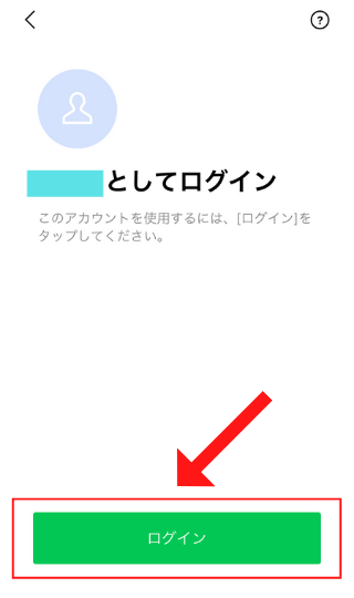 「〇〇としてログイン」と元々使っていたLINEのアカウント名が表示されたら「ログイン」をタップ