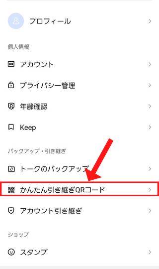 元々使っていたスマホでLINEの設定から「かんたん引き継ぎQRコード」を開く