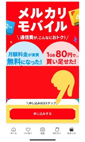 メルカリモバイルの申し込み方法について