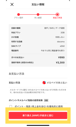 メルカリモバイルの申し込み手順