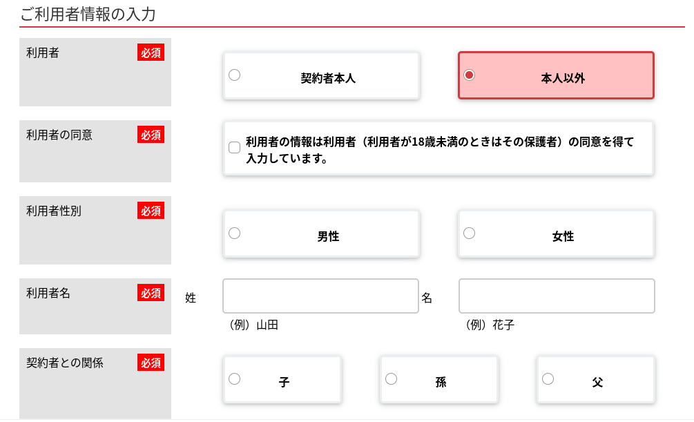 ※契約後にマイページから利用者情報の登録をすることも可能です。