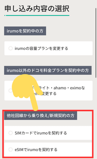 使いたい機種がirumoに対応しているか未確認の場合は、事前にチェックしておきましょう。⇒irumo対応機種