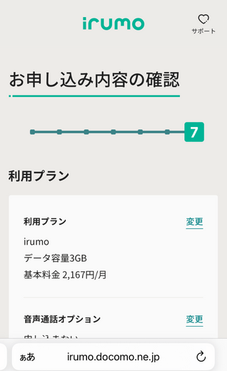 ここまでの申込み内容を確認して間違いがなければ、一番下の「注文を確定する」ボタンをタップしましょう。