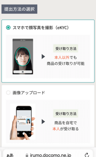 - 画像アップロード(運転免許証やマイナンバーカードの写真をスマホで撮り、アップロードする)