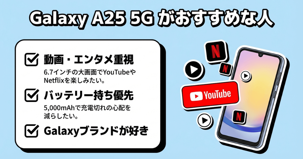 Galaxy A25がおすすめなのはこんな方です。