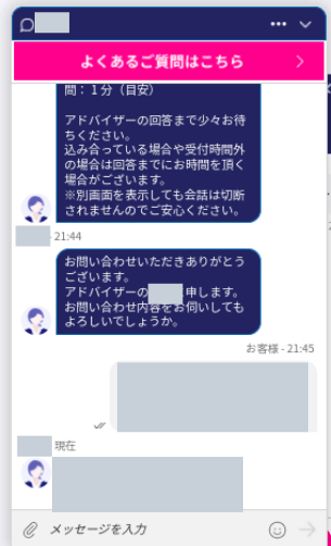 実際に、上記の手順でチャット問い合わせをしてみました!