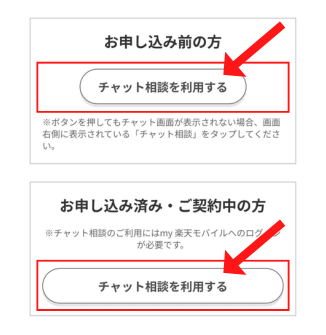※「お申込み済み・ご契約中の方」の場合は「チャット相談を利用する」をタップすると「my 楽天モバイル」へのログインページが表示されます。