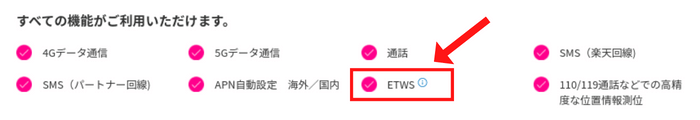 ★対応状況のページで「ETWS(緊急地震速報、津波警報の受信などの機能)」の項目が☑となっていれば対応しています。