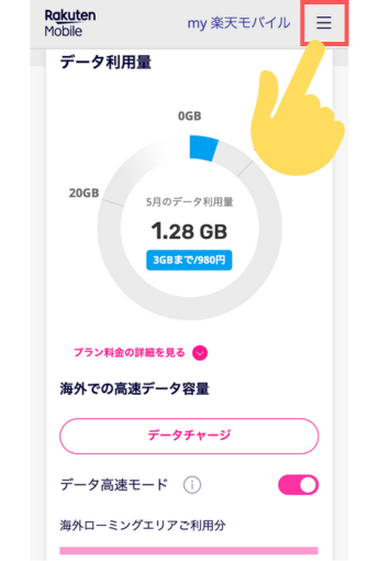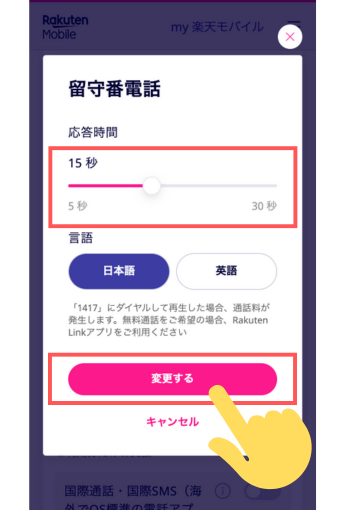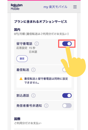 留守電と同様に、my楽天モバイルで設定変更が可能です。