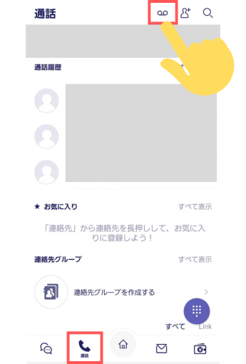 ★Rakuten Linkアプリ開き、左下の通話マークをタップ>右上の留守電マークから再生