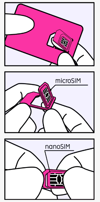 SIMカードには3種類のサイズがあり、上から大きい順です。