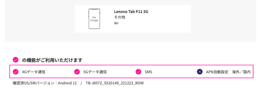 | Lenovo Tab M10a 5G LET02 | 4G→◯ 5G→◯ | ✕ |