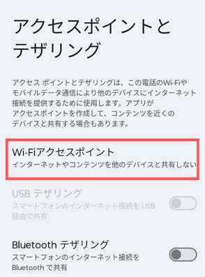 これでスマホが親機となって、他の通信機器で通信ができます。