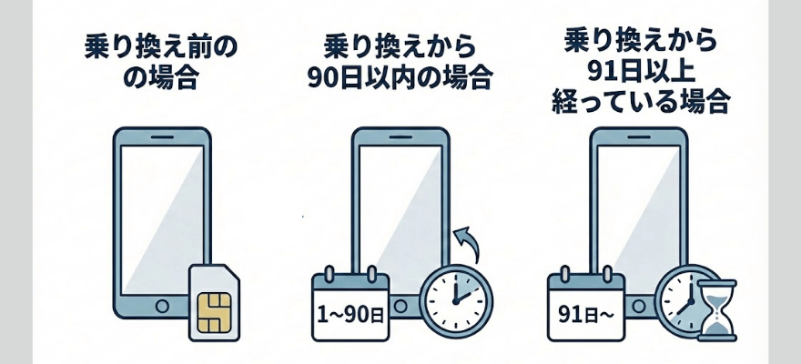 乗り換えから90日以内の場合は以下の手順で確認ができます。