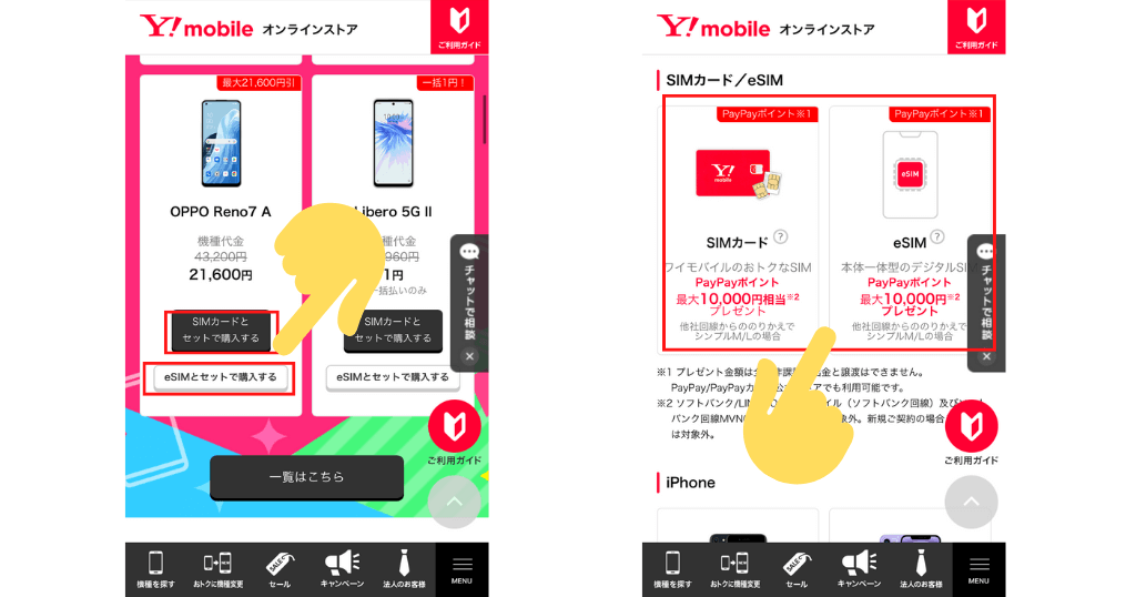 ワイモバイル「SIMカード(nanoSIM)」と「eSIM」の違い